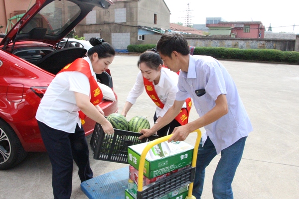 早上八点,汽车南站3561服务班的沈霞波、许怡琼、黄黔越、陈蓉便忙碌起来,买饮料、装西瓜、挑选防暑用品…….一个小时左右便把防暑降温的物资装上了车,希望能尽自己的微薄之力,使老人们的饮食起居更舒适。