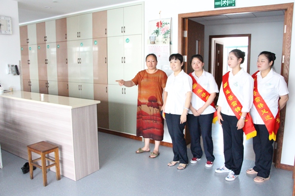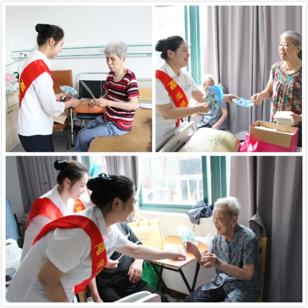到达敬老院后,3561的姑娘们和敬老院的护工一起为老人们切开西瓜,递到他们的手上,与他们拉家常,走进他们的内心世界。与往常的慰问不同的是,这次是敬老院搬新址后的第一次慰问,酒店式的餐厅、公寓式的起居室、专业化的护理室、人性化的养老中心让人眼前一亮……老人们热情地拉着我们的手向我们展示她们的新居,脸上洋溢着幸福与满足。大家围坐在一起聊天,其中一位83岁的老人怕我们热从自己的房间把风扇搬了出来,特意把风扇对着我们吹,大家笑着说道:“奶奶,现在房间设施好了,都打着空调呢,您别忙活了我们不热!”虽然这是一个小小的举动,但是我们的心瞬间融化了,真的,今天不热,老人们的举动就像是烈日下的空调。