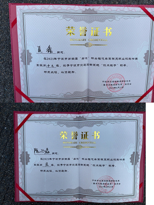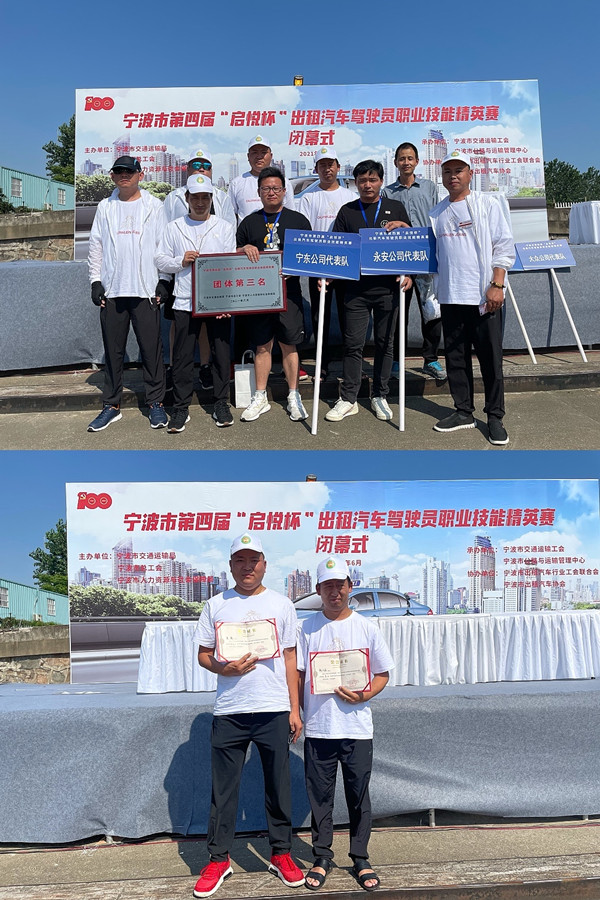 本次精英赛由市交通运输局、市总工会、市人力资源和社会保障局联合主办,以“诚实守信、提升服务”为主题。公司所属的永安汽车出租有限公司驾驶员从全市出租汽车企业派出的30个代表队80名参赛选手中脱颖而出,最终获得获得团体第三名的好成绩。此外,公司所属的永安汽车出租有限公司阮兴雷获得个人第五名,兴北宁东出租汽车有限公司夏鑫获得个人第十七名,他们被授予了“宁波市交通运输系统技术能手”荣誉证书。