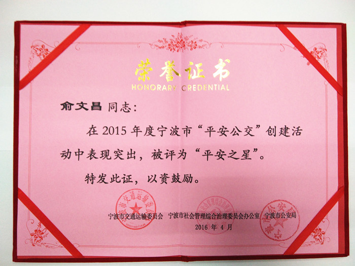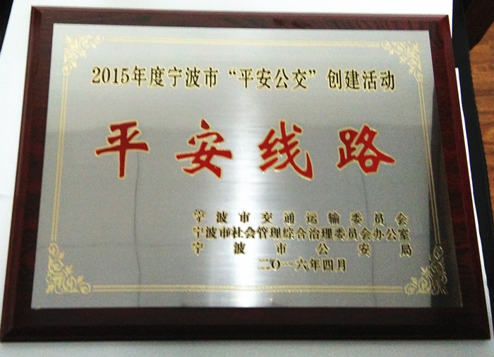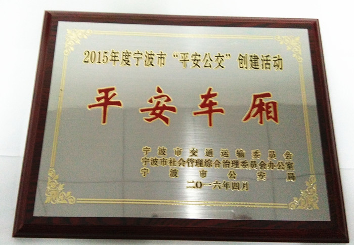 公运公交在宁波市交通运输委员会、宁波市社会管理综合治理委员会办公室、宁波市公安局联合组织开展的2015年度宁波市“平安公交”创建活动中表现突出,其中988路被评为“平安线路”、浙B90303被评为“平安车厢”、驾驶员余文昌被评为“平安之星”。