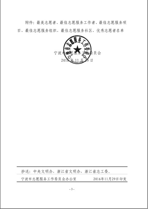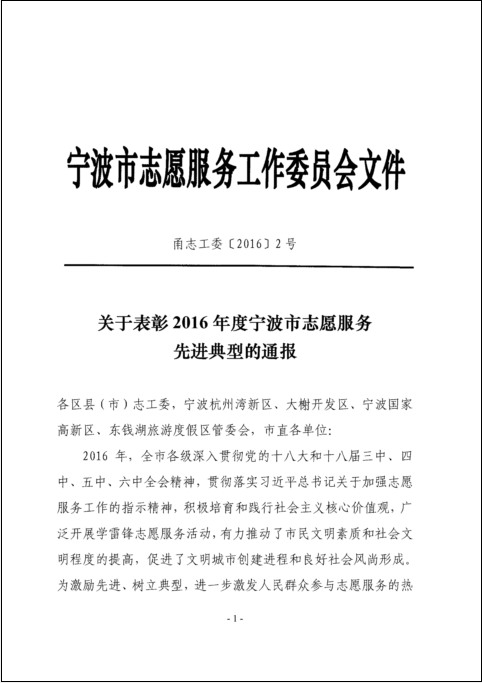 2016年11月,宁波汽车南站3561服务班董宏翠被宁波市志愿服务工作委员会授予“优秀志愿者”荣誉称号。