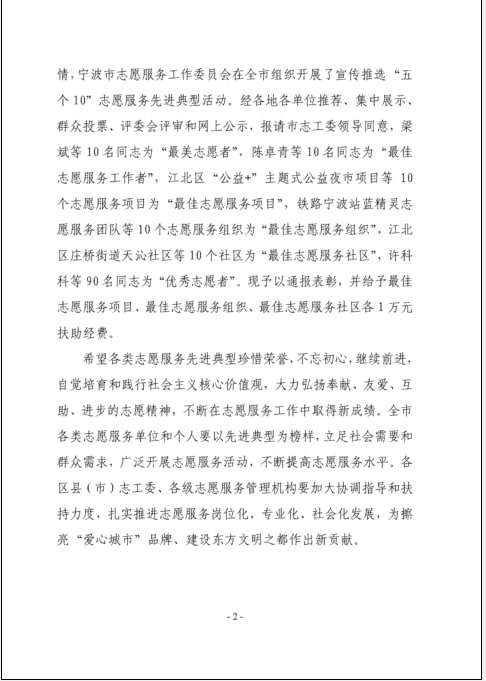 汽车南站董宏翠荣获“宁波市优秀志愿者”荣誉称号