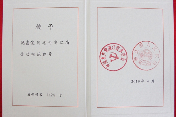 2019年4月30日上午,浙江省庆祝“五一”国际劳动节暨表彰劳模先进活动在省人民大会堂隆重举行。会上,宁波汽车南站3561服务班班长沈霞波被授予“浙江省劳动模范”荣誉称号。